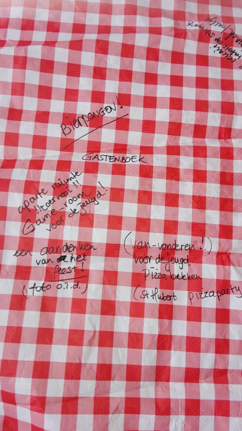 Er zijn mooie ideeën ontstaan en deze zijn ook opgeschreven op de tafelkleden. Zie hieronder.